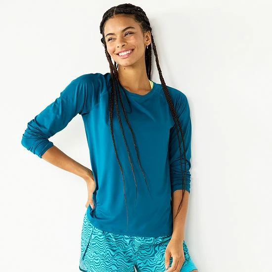 Petite Tek Gear® Performance Long Sleeve Tee Night Life Teal