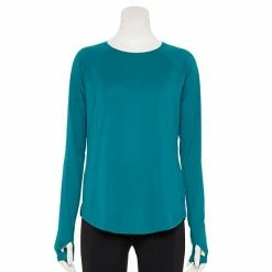 - Long raglan sleeves with thumb-hole cuffs